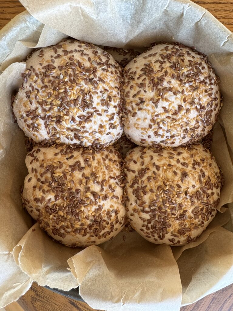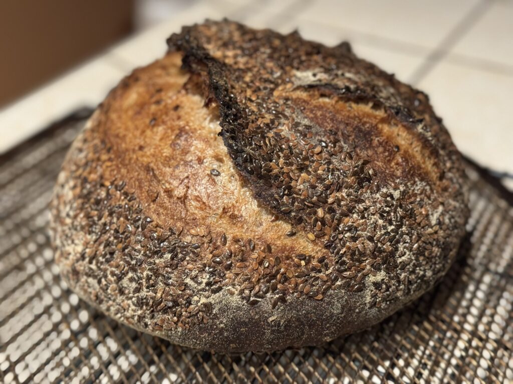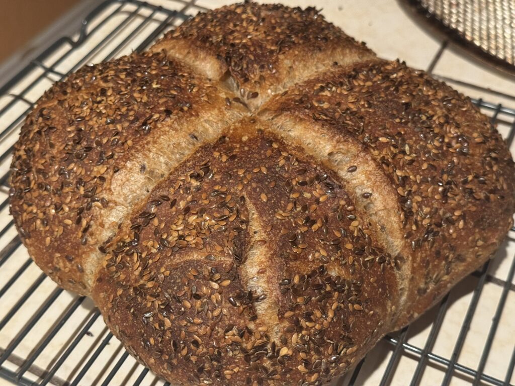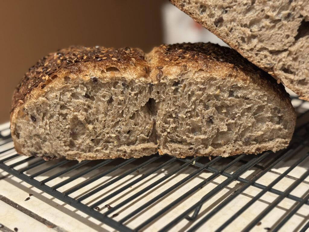 This shape was easy to split into smaller loaves for packing into a backpack. The oil from the flax seeds contributed to a super soft crumb, and the seeds added depth and texture.