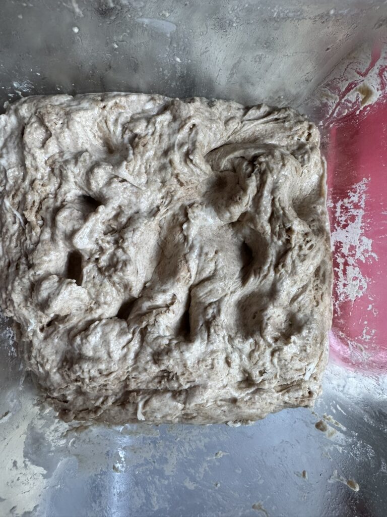 I’m trying to be more thorough, so here are some photos of the dough through the mixing and folding process.